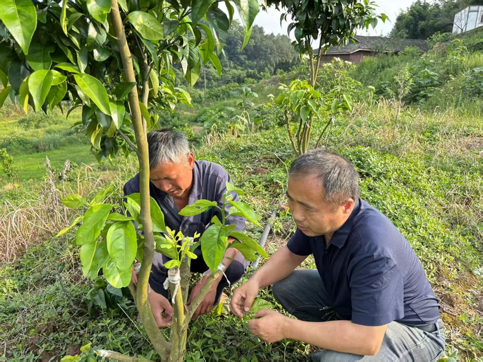 曹立(右)在果园查看柑桔树生长情况。新华社发(李顺心 摄)从苗木培育到果品加工,从批发分销到零售消费,一颗小小的种子,串联起整个柑橘产业链。